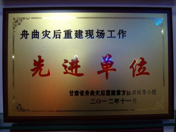 2012年11月被甘肃省舟曲灾后重建前方协调知道小组“先进单位