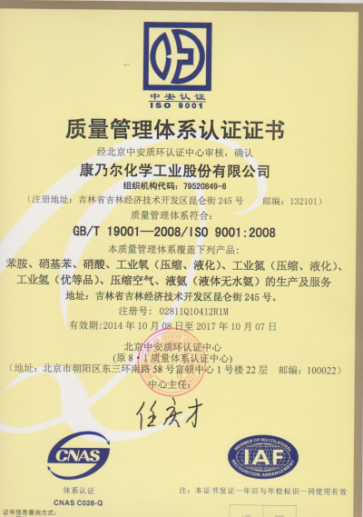 质量管理体系认证证书
