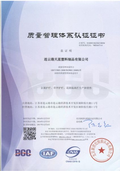 您好,欢迎访问天星护栏(连云港天星塑料制品有限公司)网站。